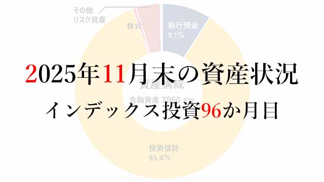 月次実践録 2025年11月末の資産状況/インデックス投資96か月目 2025年11月末の運用状況です。インデックスファンドの積立を始めて96か月が経過しました。インデックス投資を本格的に始めてから丸8年! ようやく「長期投資」の第一コーナーに差し掛... 2025.12.01 月次実践録
