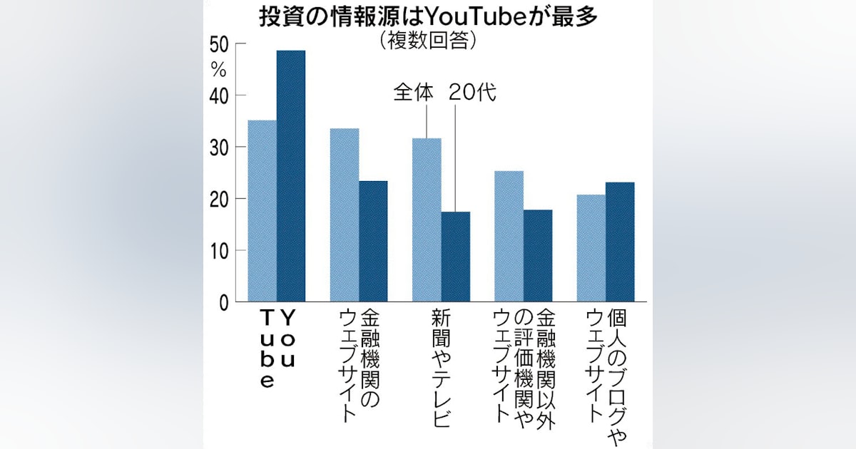 - 投資の情報源(オンラインが大半で、YouTubeが最多、個人ブログも2割ほど)