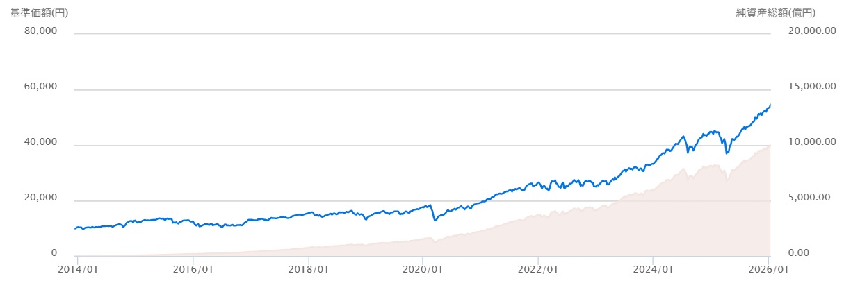 2026年1月13日、ニッセイアセットマネジメントの「ニッセイ外国株式インデックスファンド<購入・換金手数料なし>」が純資産総額1兆円を突破しました。